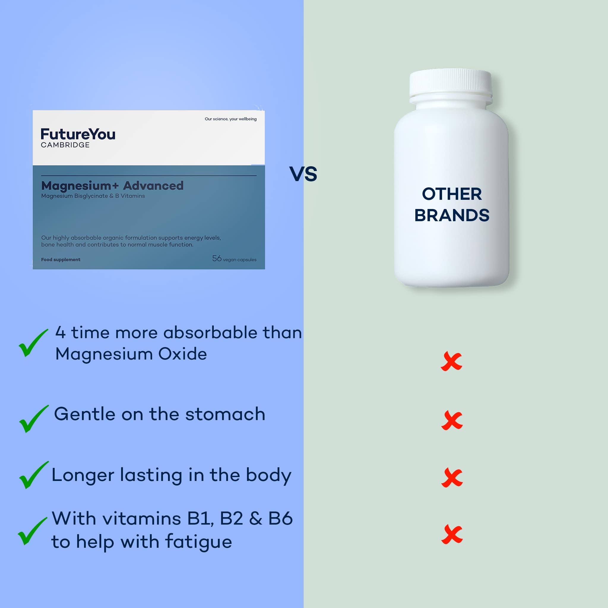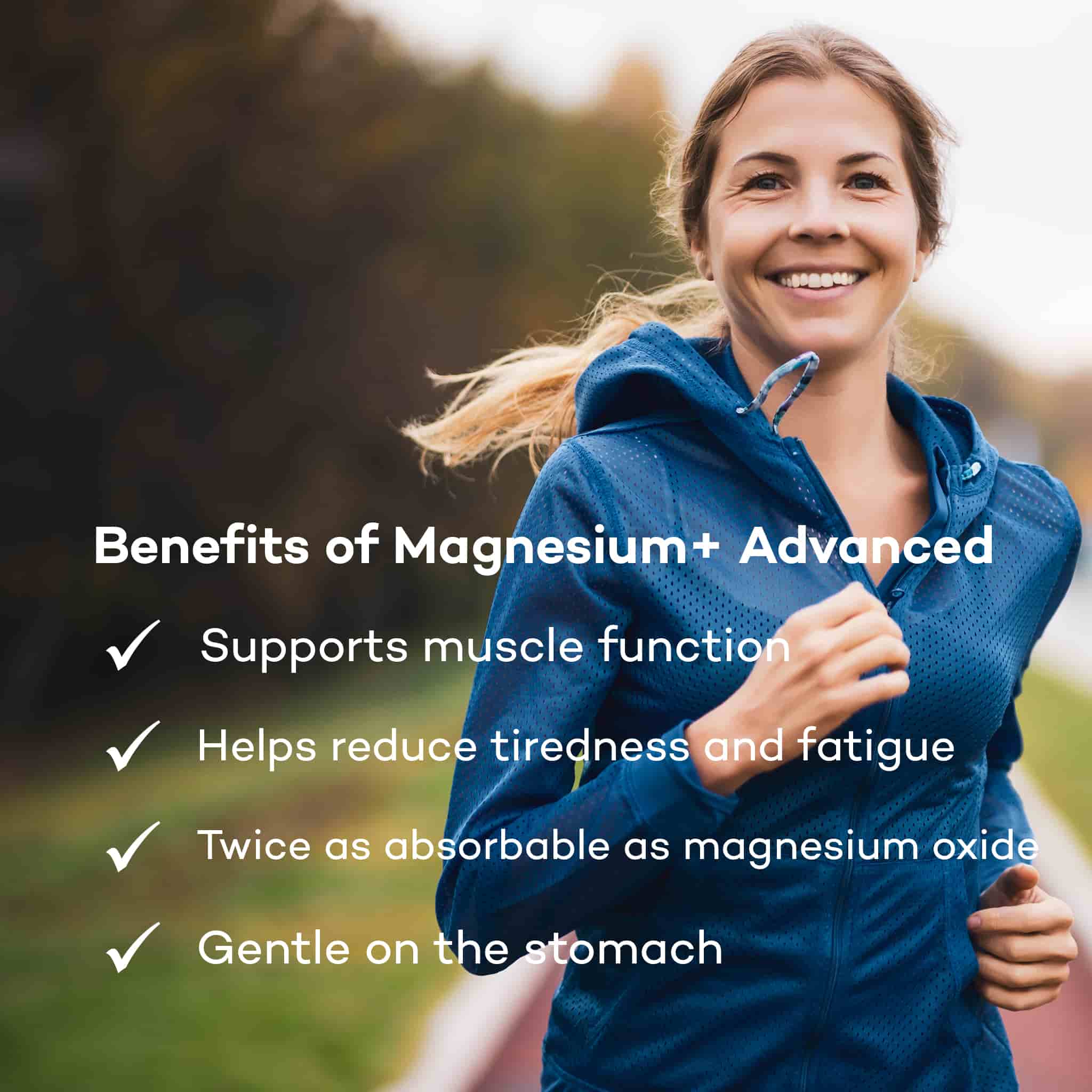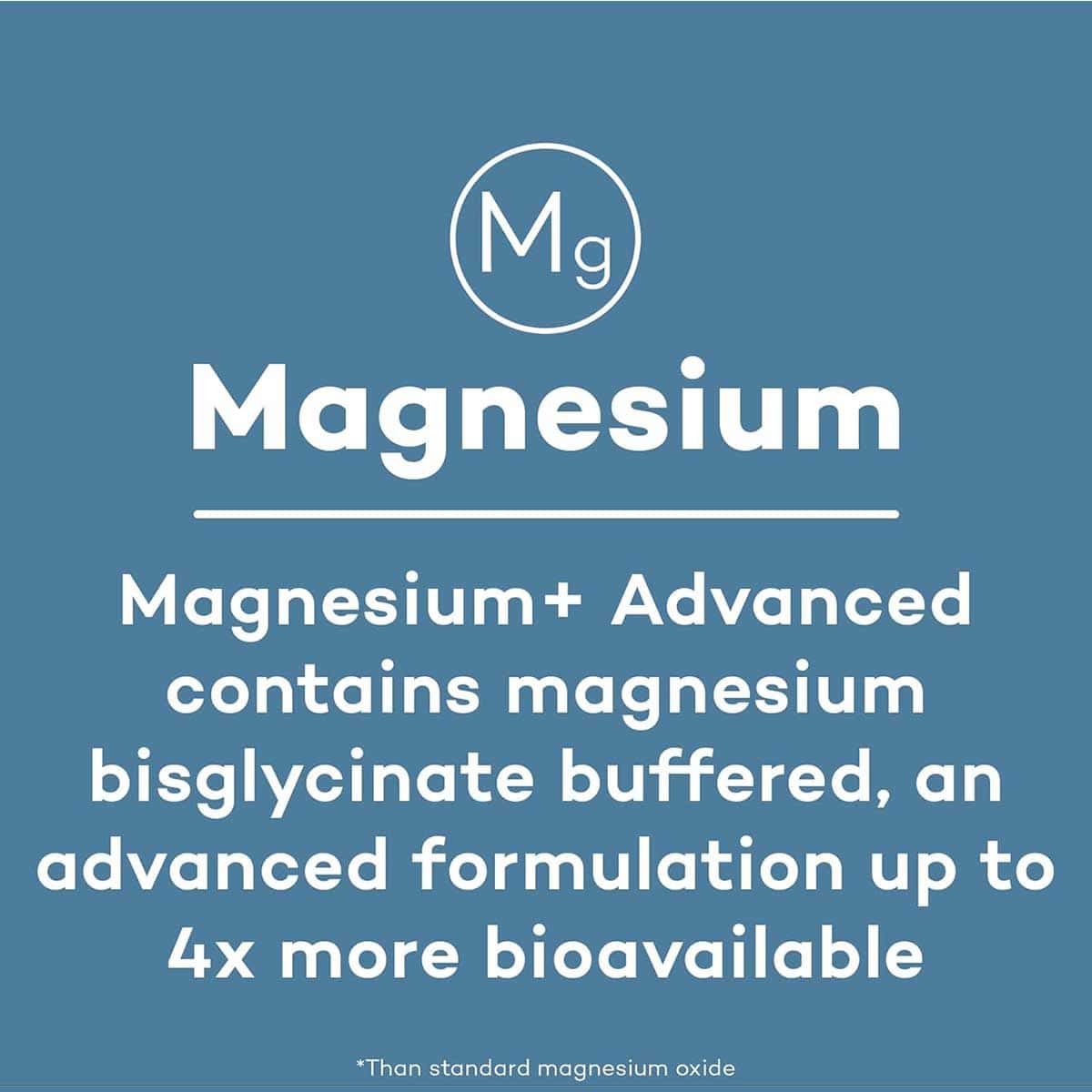 Magnesium+ Advanced is our most bioavailable magnesium formulation to date, up to four times easier to absorb than standard magnesium oxide.